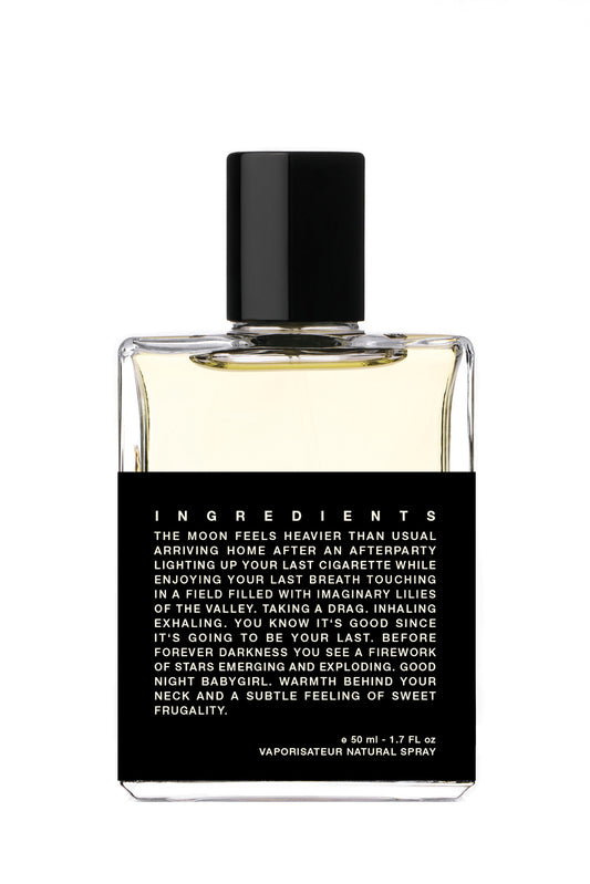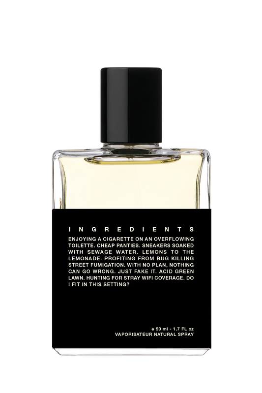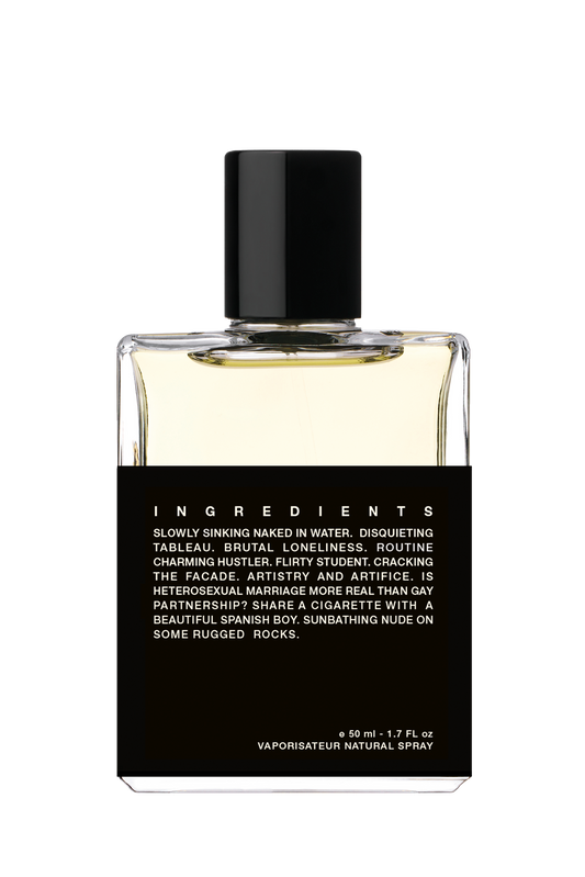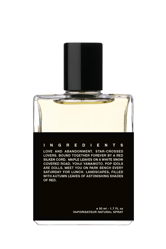 また多感覚の体験にはパッケージも一つの要素となります。成分を短い言葉遊びに変換することで、パッケージに視覚的かつ物語的な物理性を与えるだけでなく、成分自らが語り部になることを可能にします。言い換えれば、ストーリーと香水は、弁証法的に何度もお互いを構築し、変換し、再現するのです。