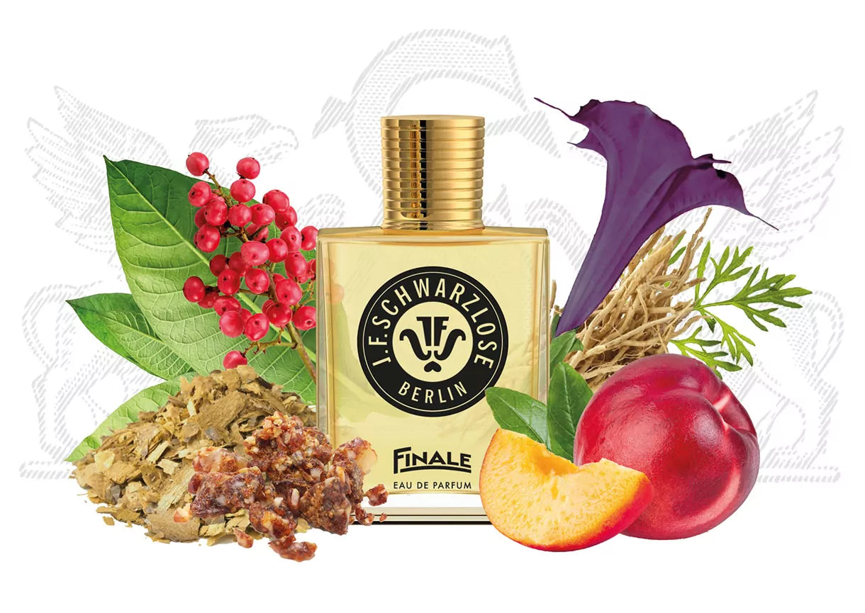 幕が降り、喝采が響く。それは忘れがたい体験の最高潮を迎え、感情の昂ぶりとともに訪れる瞬間。アヴァンギャルドとクラシックなエレガンス、そして情熱と無限のクリエイティビティが交錯するベルリンの象徴的な舞台にインスパイアされたJ.F. Schwarzlose BerlinのFINALEは、いつまでも心に残る響きをまとう、贅沢で温かく心奪われる香りです。この壮大なフィナーレは、高揚感に満ち、永遠に続きます。物語の始まりは、レッドペッパー、ダヴァナ、ネクタリンリキュール。それはまるで、主役に照らすスポットライト。物語が展開するにつれ、タバコ、ベンゾイン、そしてブラックダチュラが、催眠的なシーンに上がるベルベットのカーテンのように現れます。最後の幕はバルサミックでウッディ、深淵で重厚なベチバー、アンバー、ガイアックウッドの香りが響き渡る最終章を奏でます。FINALEは単なるフレグランスではありません。それは、豊かなニュアンスと感情に満ちた、忘れられないパフォーマンスなのです。1914年に「この上ない自由を宿す幻想的な香り」として発表されたFINALEは、力強さ、想像力、そして先見性を体現していました。そして今、それは目もくらむような復活を遂げ、感覚を研ぎ澄ませ、自信に満ちて、再び舞台へと帰ってきました。再構築されたロゴは、歴史的なタイポグラフィを現代的にアレンジし、香りはヘリテージとモダンが完璧な調和を奏でます。それは、偉大な瞬間の最終章に捧げる、過去から今へと続くオマージュです。