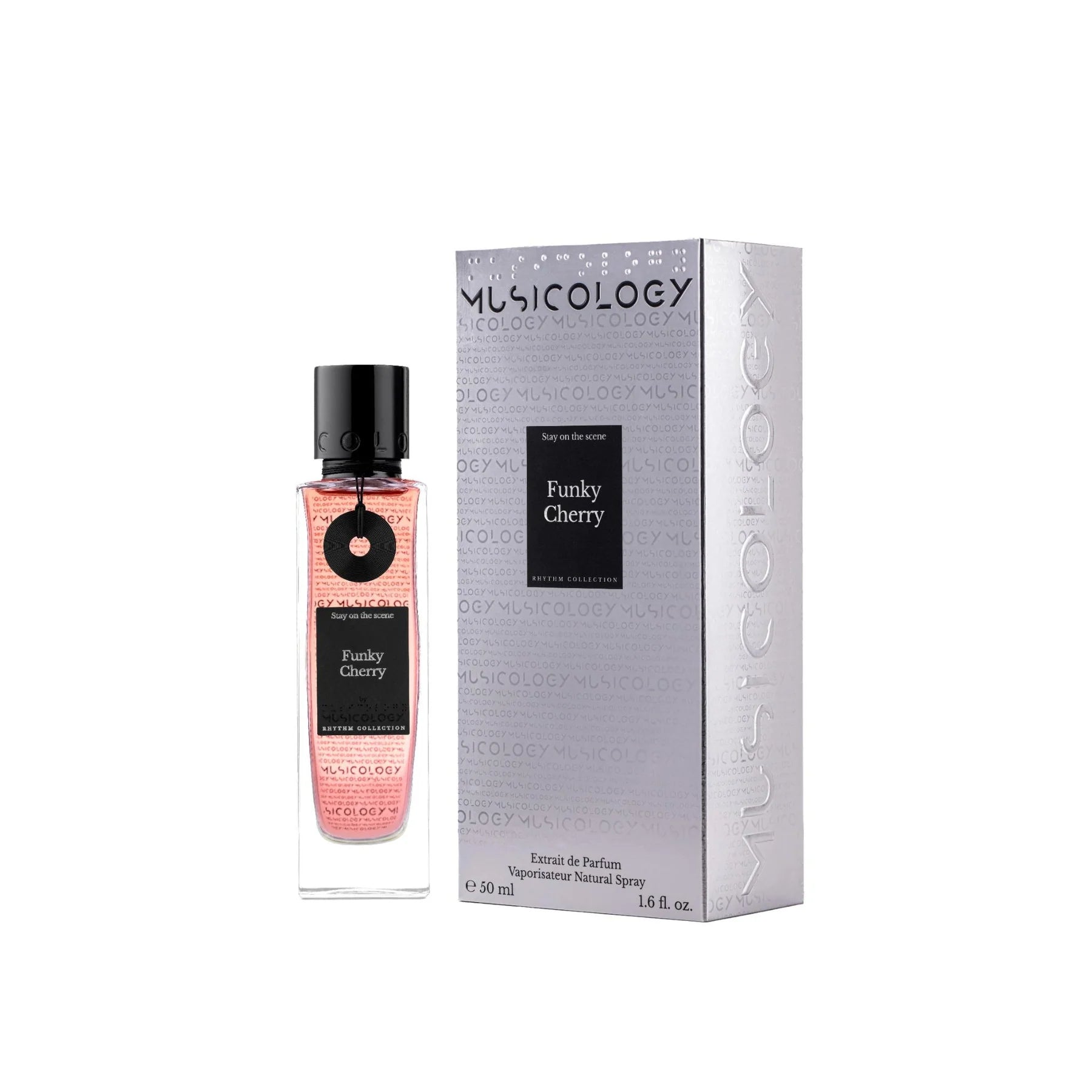 五感を揺さぶるファンキーなジャムセッションの世界へ。鮮やかなチェリーカラーと、エッジの効いたファンキーなパターンやテクスチャーが織りなす遊び心あふれる空間へと誘います。扉を開けた瞬間に弾けるのは、完熟したブラックチェリーの芳醇な香り。その輝きと甘美な調べは、まるでファンキーなベースラインの冒頭のコードのように、大胆で魅惑的な引力をもって、あなたを一気にその世界へと引き込みます。やがて、ほのかなバイオレットフラワーが洗練と官能を添え、パチョリエッセンス、アンバーウッド、インセンスレジノイドが、この香りに奥行きと揺るぎない重心と存在感をもたらします。それはさながら、楽曲全体に心地良いリズムと躍動感をもたらすアンサンブルのようです。さあ、このクリエイションが放つ鮮烈な輝きと誘惑に身を委ねてください。Stay on the Scene…(その舞台から目を離さないで)。