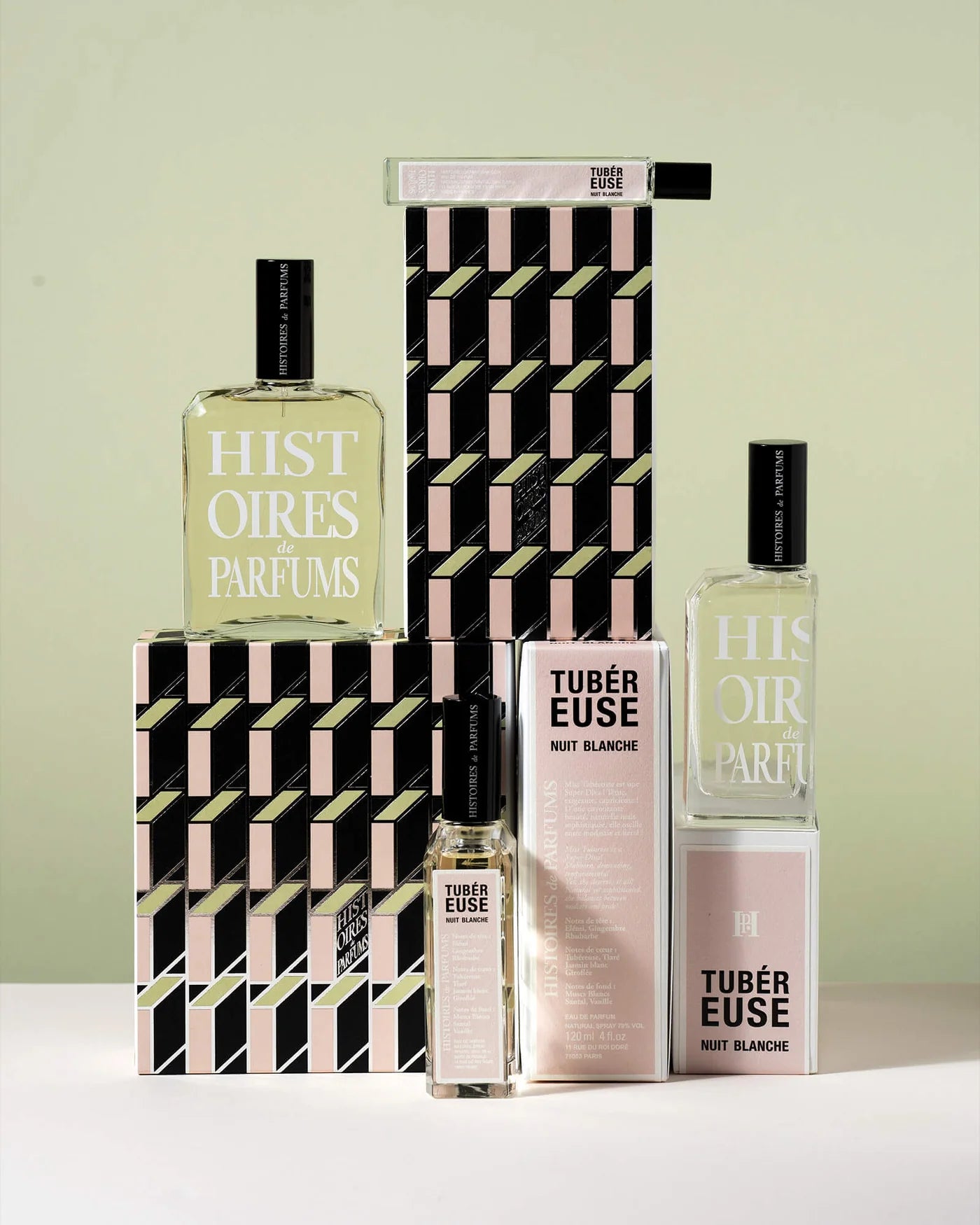 HISTOIRES de PARFUMSの世界では、それぞれの香りが独自の物語を語り伝統と現代性が融合しています。チュベルーズニュイブランシュはその二面性を大胆に体現した香りです。チュベルーズニュイブランシュは、私たちを影と光の間へ導きます。輝きを放ち、催眠術にかかるような魅力を持つこの香りは、夜の訪れとともに花開き、酩酊するような香りの渦を解き放ちます。繊細でありながら力強いチュベローズに、私たちは身を委ね、白昼夢へと誘われます。それは、感覚が揺らぎ、漂い、夢が香りへと変わる、眠れぬ夜の余韻なのです。