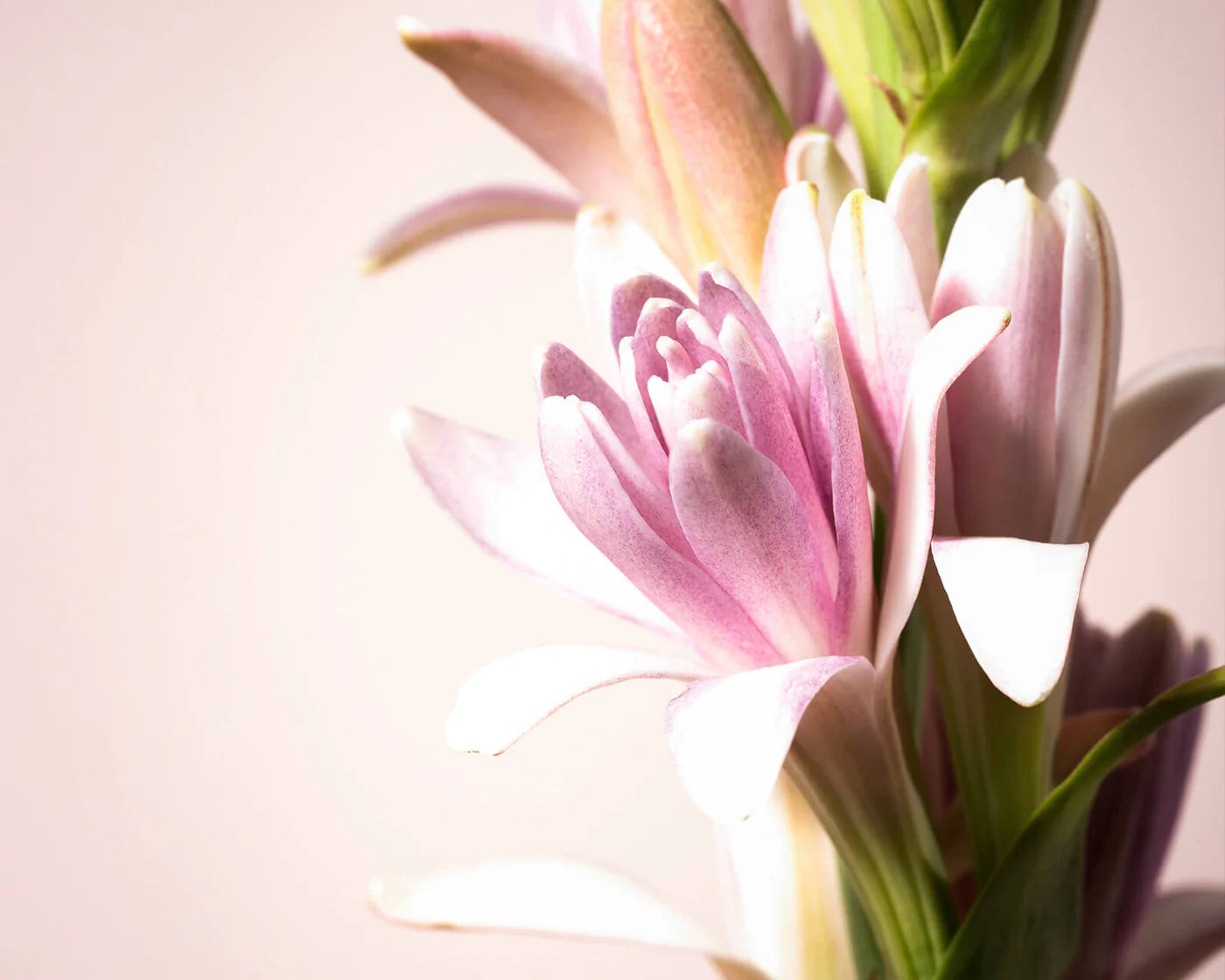 チュベローズは16世紀にメキシコから渡来し、ヨーロッパに届いたその瞬間から人を酔わせるような官能的な力を持つと語られてきました。ルネサンス期には若い女性が夜にチュベローズの咲く庭を歩くことすら禁じられていたほどです。インドではチュベローズはジャスミンと並んで「愛の花」として知られ、新婚夫婦の寝室を飾る花としても親しまれています。